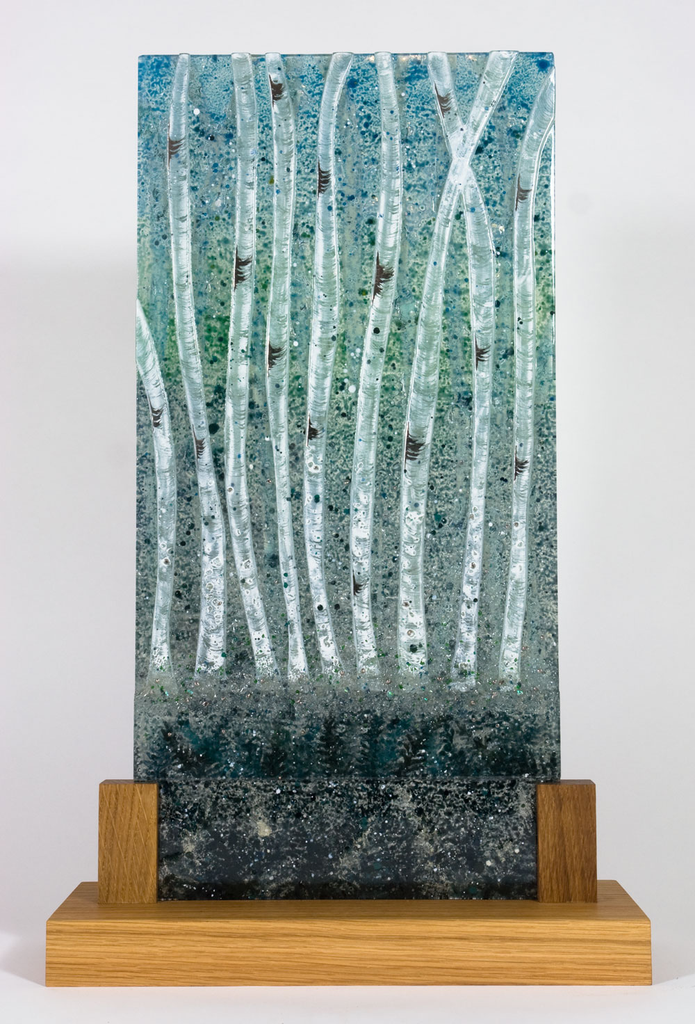 wonderful walks in Perthshire led me to the new range of woodland pieces. Real ferns are fired within the glass and layers are combined with silver leaf and platinum lustre. There are many variations on